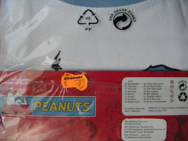 Früher als gewollt melde ich mal (ausnahmsweise), weil ich Euch meine Entdeckung nicht vorenthalten möchte. Habe ein Snoopy BIG-SHIRT von ULC gekauft um mich von der Qualität zu überzeugen & als kleine Aufmerksamkeit verschenkt. Was mich wenig überraschte ist, dass die Qualität wirklich gut ist (obwohl nur 5,99 statt 6,99€), mehr überraschte mich schon, dass diese Kleinigkeit wirklich gut ankam & am meisten hat mich überrascht, dass es anscheinend ULC Produkte auch in PL, HU & CZ zu kaufen gibt (siehe den kleinen Außenaufkleber rechts unten am Foto). Auf dem steht: