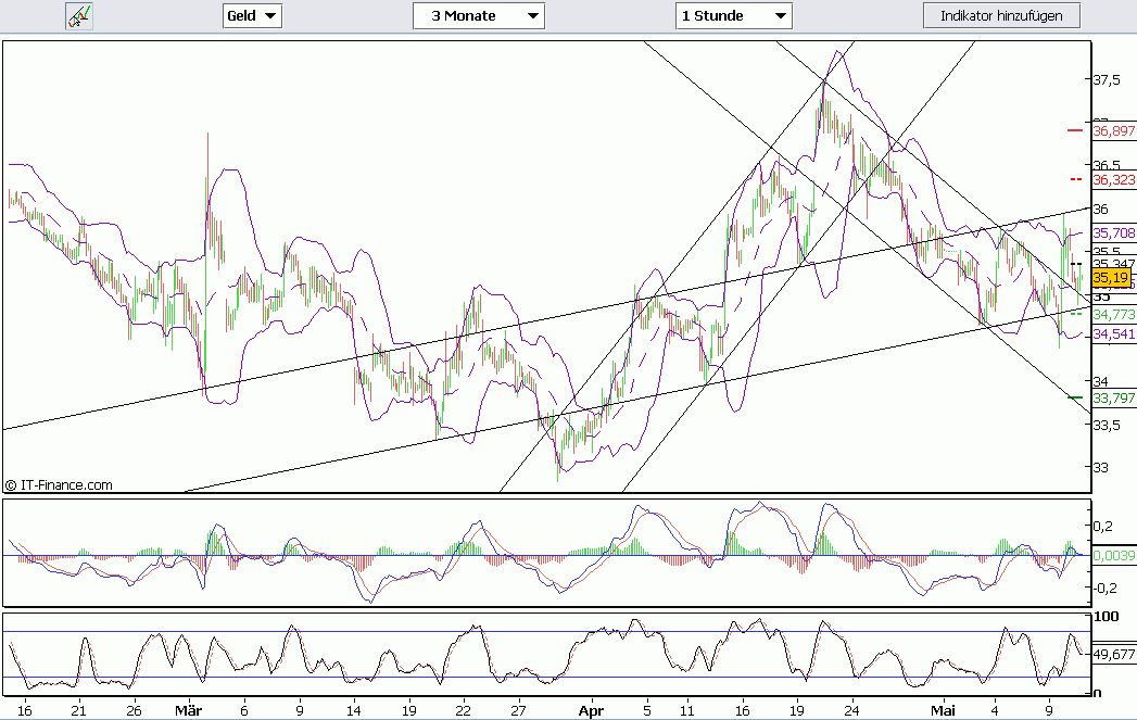 ...sieht es meiner (eher unqualifizierten) Meinung sehr gut aus. Der kurzfristige Abwärtstrend wurde gestern überwunden und heute nochmal angetestet. Der sehr zögerliche Aufwärtstrend seit Mitte März wurde netterweise gestern kurz unterboten - so dass einige Zocker wohl herausgedrängt worden sind und es weiter aufwärts gehen kann.