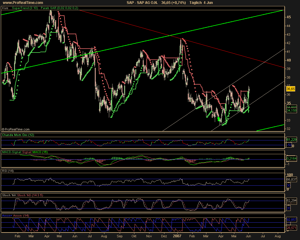 SAP hat auch schon die Aufmerksamkeit von Fondmanager auf sich gelegt. Die suchen nämlich nach Titeln, die in dieser Hochphase des Marktes noch underperformed sind. Das gleiche gilt auch für die Telekom. Die ist auch ins Blickfeld von Fondsmanagern geraten. Charttechnisch und fundamental sollten beide Titel in nächster Zeit deutlich zulegen (meine Meinunh).