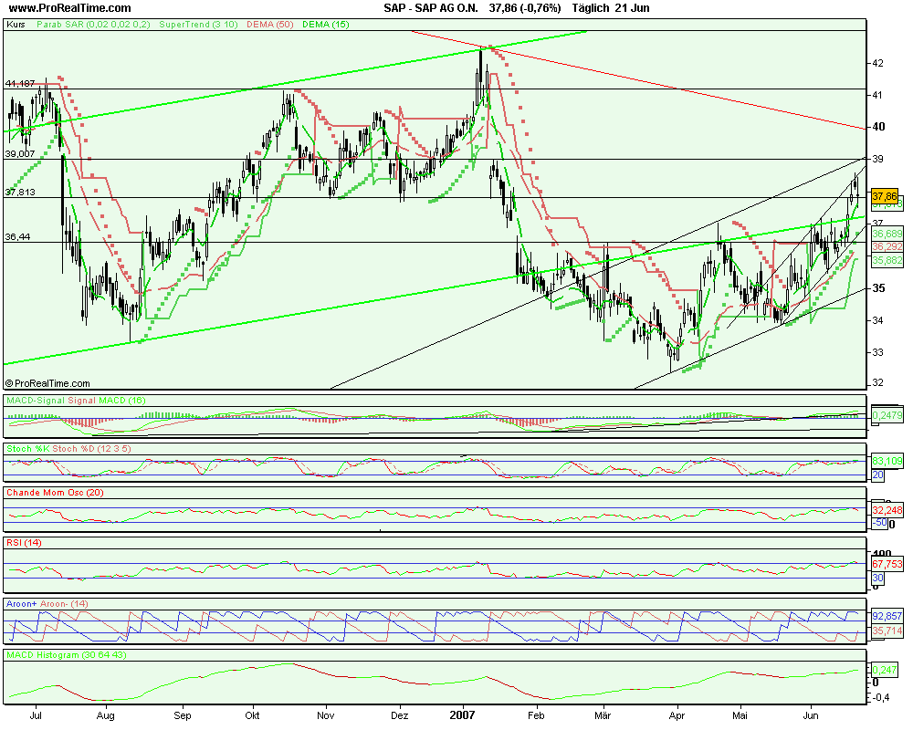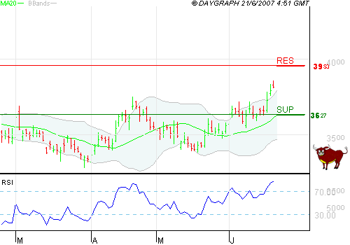 BEWEGUNGEN UND AKTIENSTÄNDE Das Papier erlebt eine Hausse. Es liegt über seinem beweglichen Durchschnitt über 50 Tage. Der Stand des beweglichen Durchschnitts über 20 Tage (höher als der bewegliche Durchschnitt über 50 Tage) stimmt optimistisch hinsichtlich der mittelfristigen Aussichten. Die ersten Kaufniveaus sind die Unterstützungslinien bei 36,27 EUR, und dann bei 35,46 EUR - nur die Widerstandslinien bei 39,53 EUR, dann bei 40,35 EUR, könnten die Kurse dämpfen. ...Greats @allSemi ☺