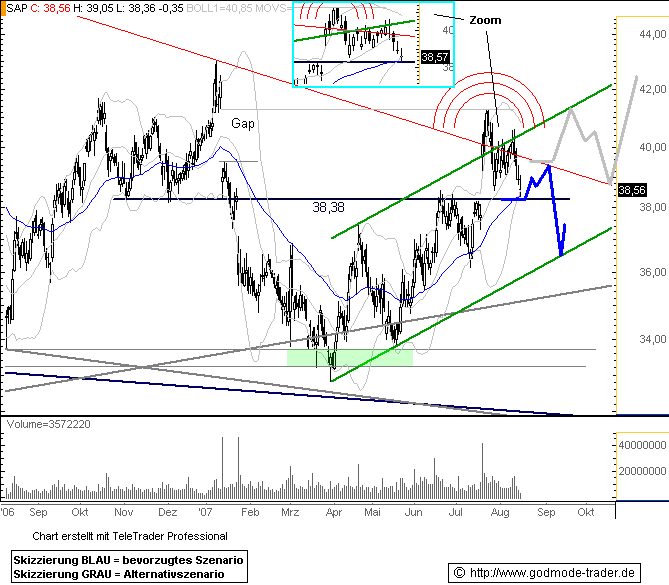 15.08.2007 11:30 SAP erreicht "BOUNCE" Level für kurzfristige Trader