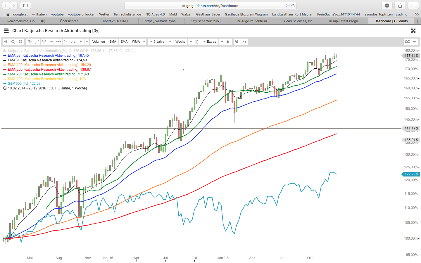 Zudem sollte man bedenken, dass ich wie angekündigt seit Ende November auf Kosten der Outperformence mein Depot schon für 2017 langsam umgestellt habe. Deshalb baute ich Cash auf, den ich nun sukzessive wieder investieren werde. Das die Märkte genau in dem Moment (Anfang Dezember) nach oben ausbrachen, konnte ja niemand wissen. Das ist im Grunde auch der einzige Grund für die Underperformence seit Ende November gegenüber dem S&P.