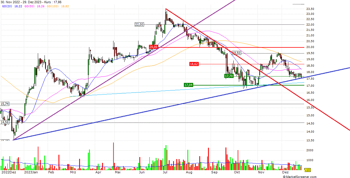 Charttechnisch wäre es schön wenn die 17,5 € Marke hält. Dann wäre ein Aufwärtstrend mittelfristig etabliert. Wobei es auch kein totaler Beinbruch wäre, wenn wir nochmal einen Doppelboden bei 16,8-16,9 € bilden würden.