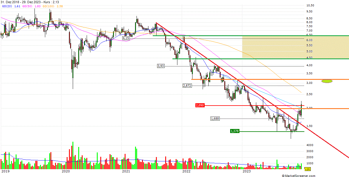 Kurs 2,12 € MarketCap 122 Mio € EV etwa 193 Mio € 12 Monate Kursziel 4,40 €
