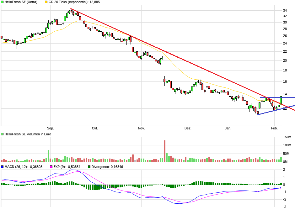 Aber klar, wenn es noch über 14 geht, wird es umso deutlicher mit dem Kaufsignal. Ist aber jetzt schon ne klare Umkehrformation nach Bruch Abwärtstrend und höherem Hoch.