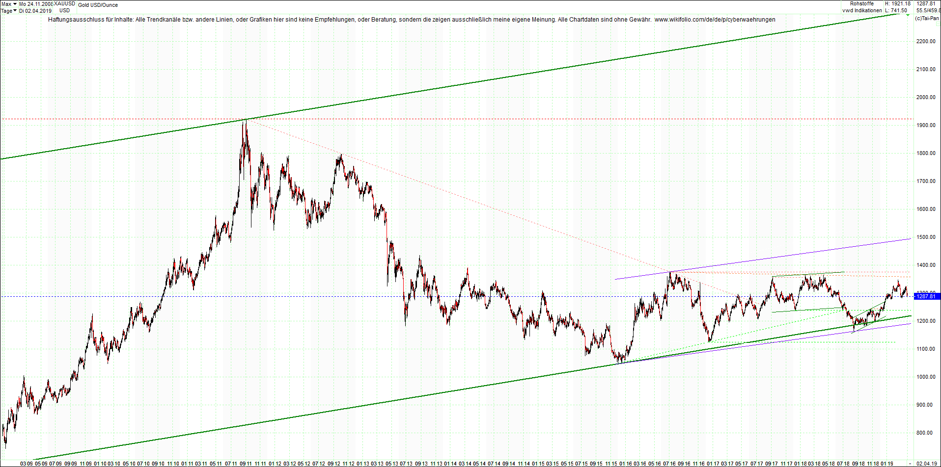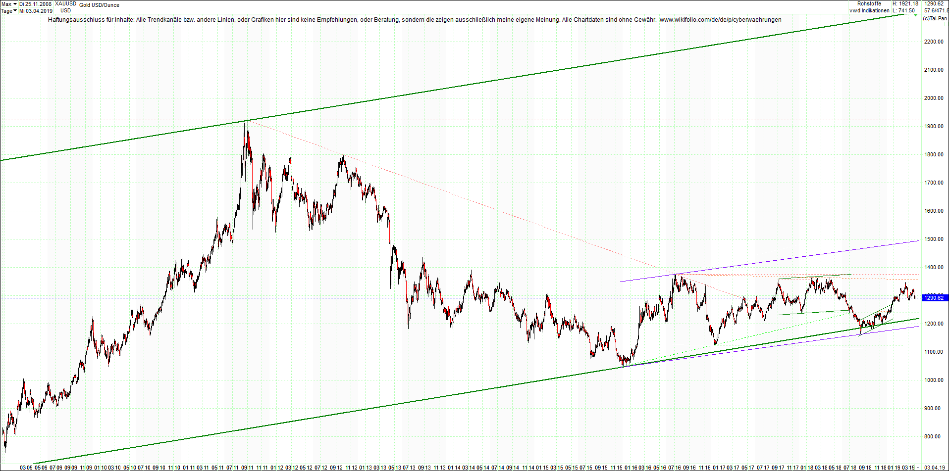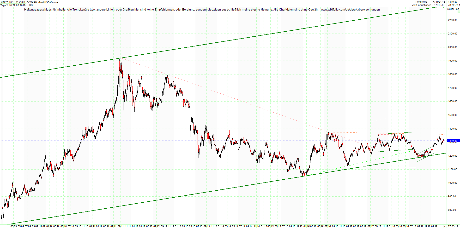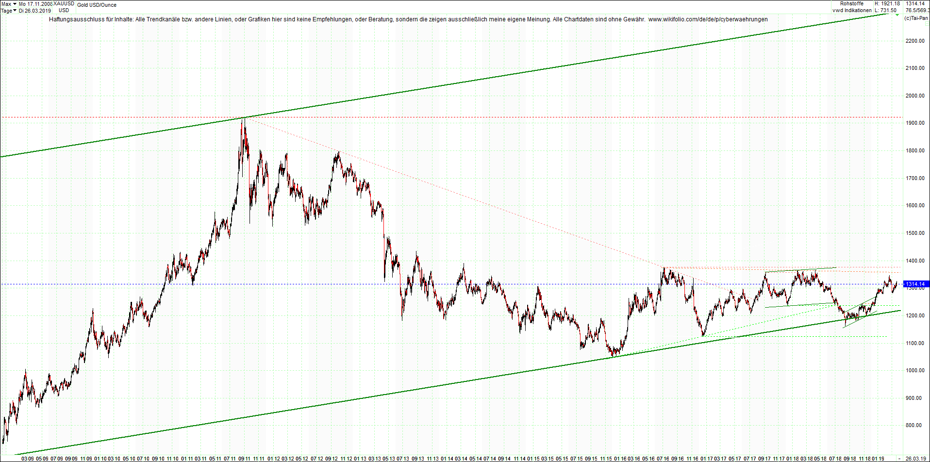 1618. GOLD chart heute Abend.